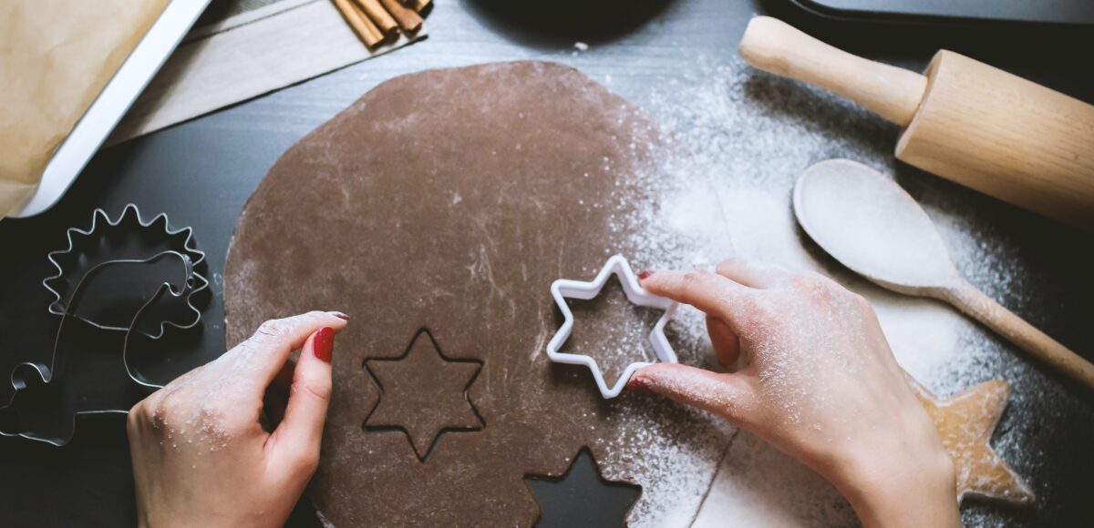 - Während der Backofen aufheizt, rollt man den Teig ca. 5mm dick aus und sticht die Kekse in der gewünschten Form aus.