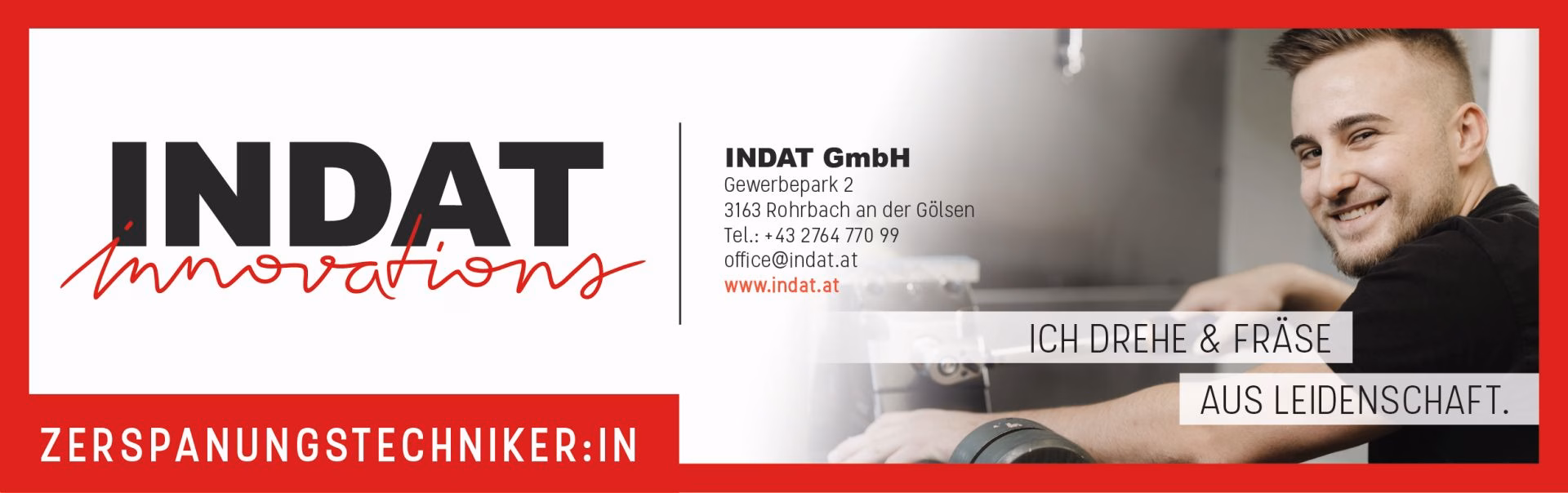 Fräsen und Drehen sind keine Fremdwörter für dich und du findest CNC-Maschinen interessant? Du bist strukturiert und gibst dich mit Freude der Zerspanung hin? Du willst weiterhin das tun, was du gelernt hast? Dann ist die Abteilung CNC bei INDAT genau das Richtige für dich! Wir freuen uns über deinen Lebenslauf und dein Motivationsschreiben per E-Mail an bewerbung@indat.at.